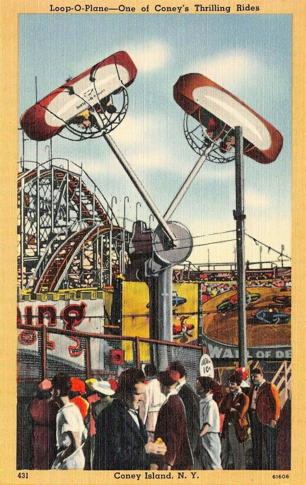 LP08 Coney Island New York Postcard Loop o Plane Rides