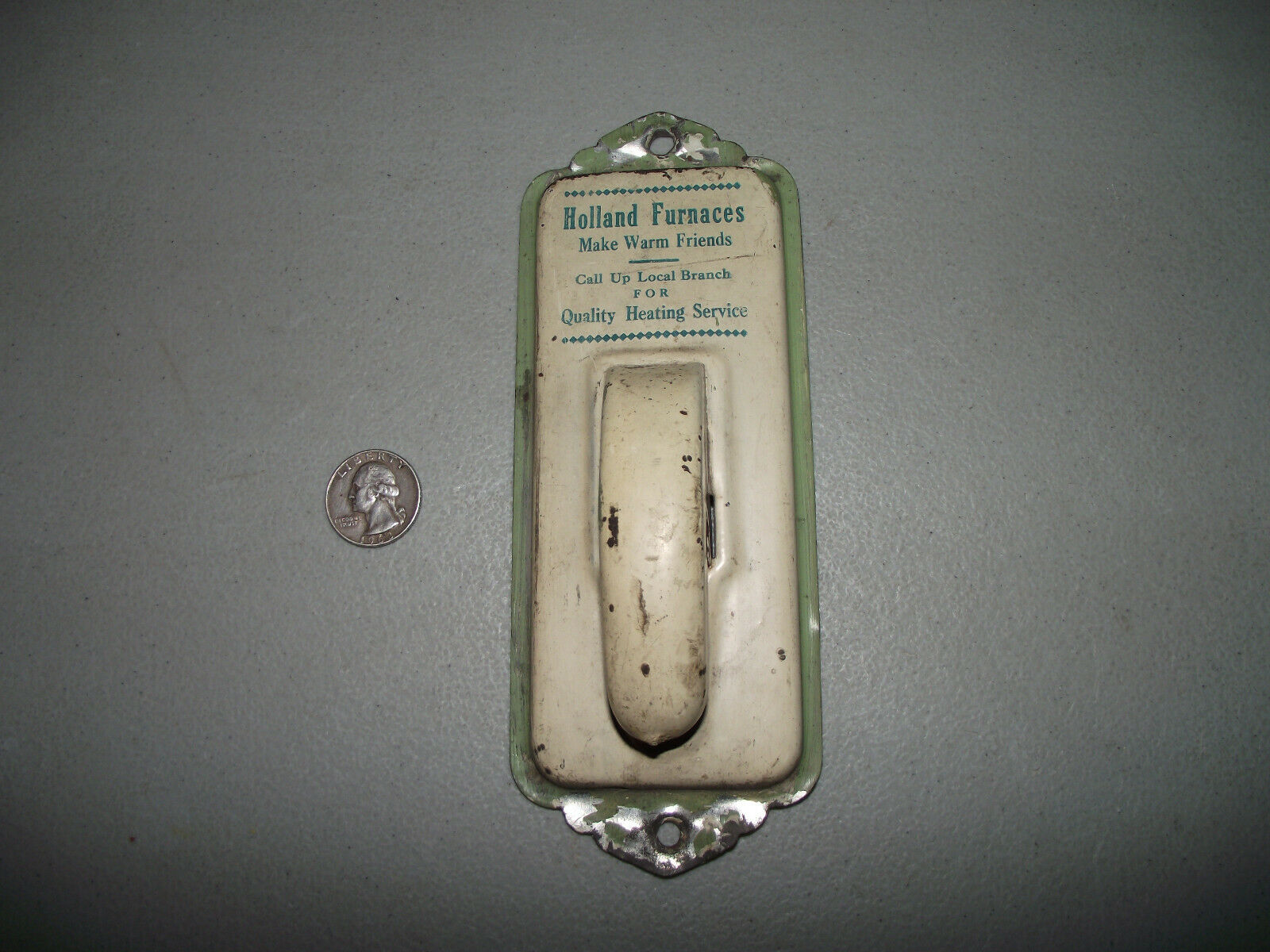 Title (ebay affiliate link): Vintage Metal Wall Mount Mail/Paper Holder Ball-Type Advertising Holland Furnace