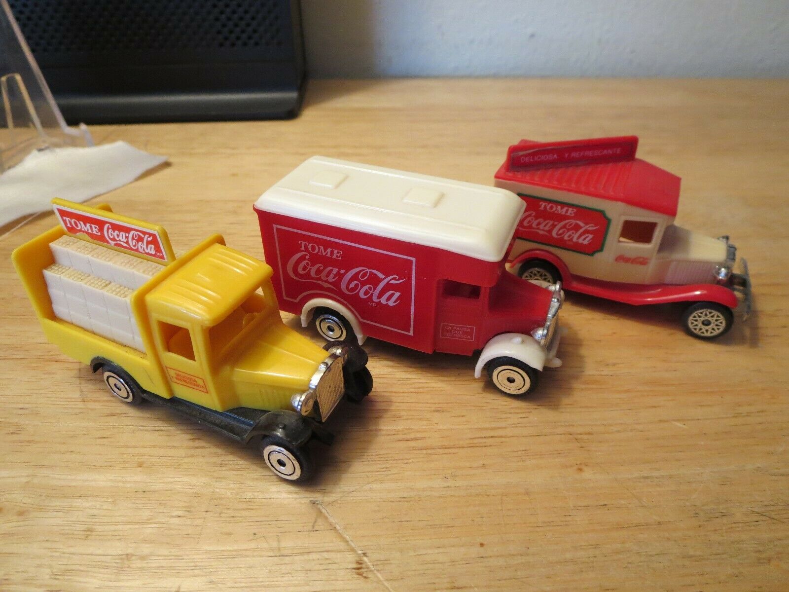 Coca Cola Delivery Toy Trucks Lot of 3 Vintage Red & Yellow Diecast/Plastic Mix