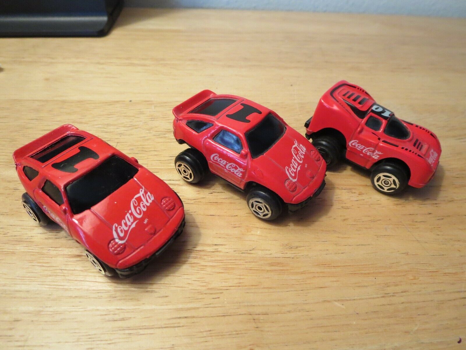 Coca Cola Race Cars #10 & #1 Toy Lot of 3 Vintage Red Diecast/Plastic Mix