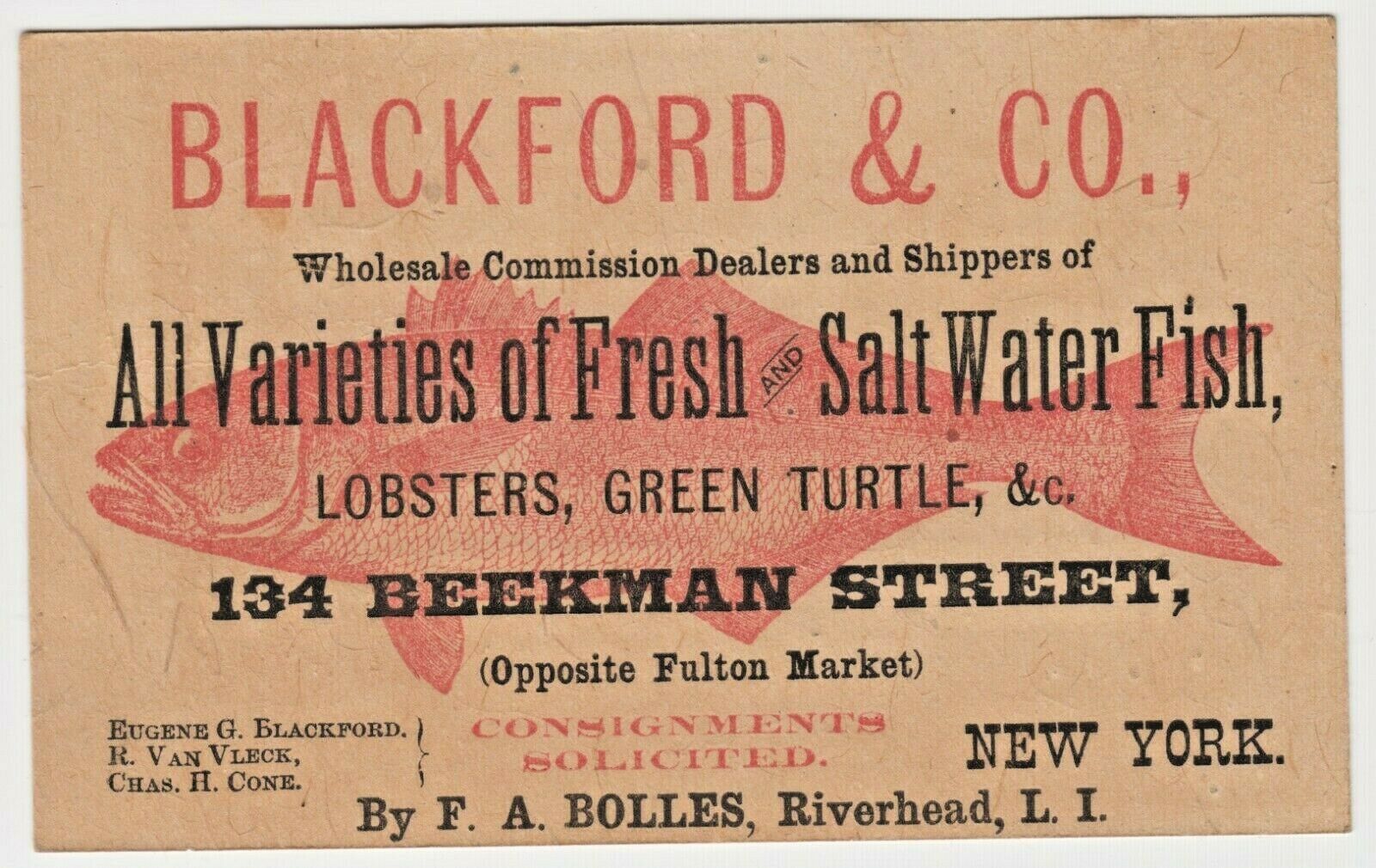 c1880s Blackford & Co. NYC Victorian Trade Card Fish Dealers nr Fulton Market