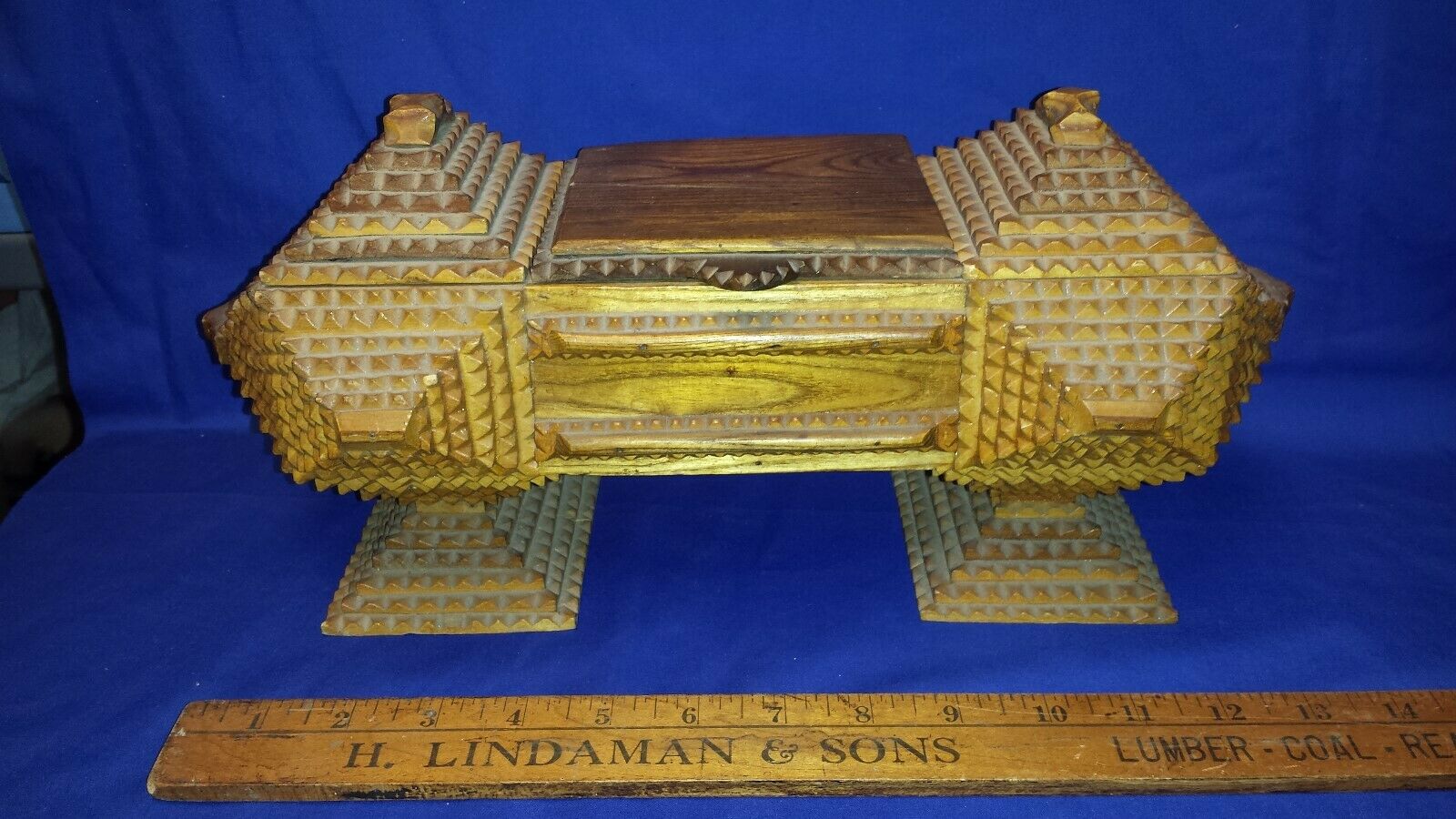 vtg TRAMP ART Jewelry Keepsake Vanity Wood Box Eastern Style SHIPPING INCLUDED