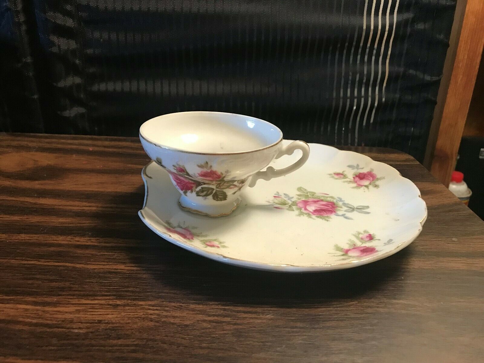 Vintage Tea Cup & Saucer Hand Painted White & Gold Rose Pattern