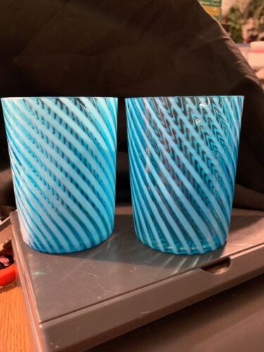 Antique Victorian Glass BLUE Opalescent Swirl Tumblers