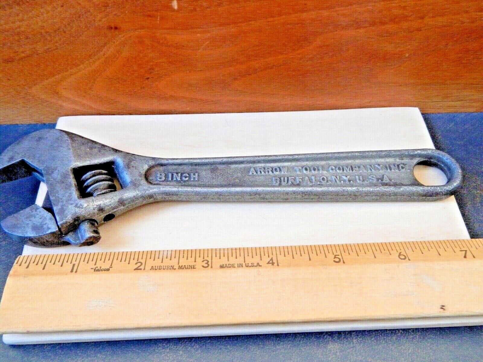 RARE ARROW 8" ADJUSTABLE WRENCH -1920s - ARROW TOOL COMPANY INC. BUFFALO N.Y.
