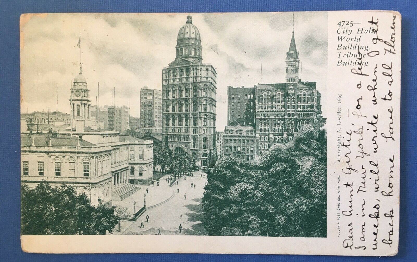 1907 New York Postcard - City Hall, World Building, Tribune Building - Und Back