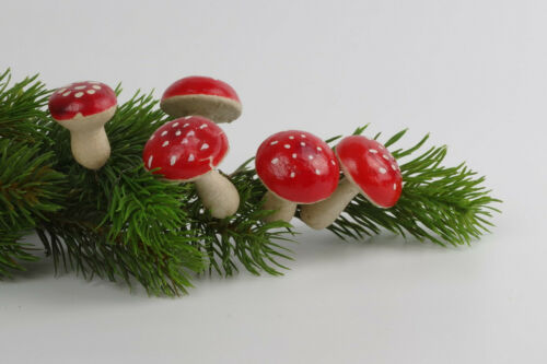 5 x Vintage Spun Cotton Christmas Ornaments,toadstools.