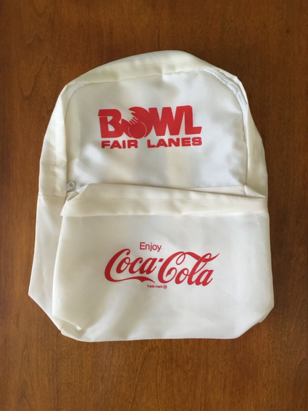 Title (ebay affiliate link): Vintage Coca-Cola nylon material backpack, "Bowl Fair Lanes," great condition.