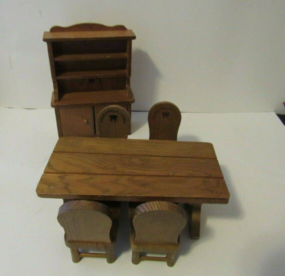 Vintage Teddy Bear Story Bear or Doll Furniture Hutch & Table & 4 Chairs