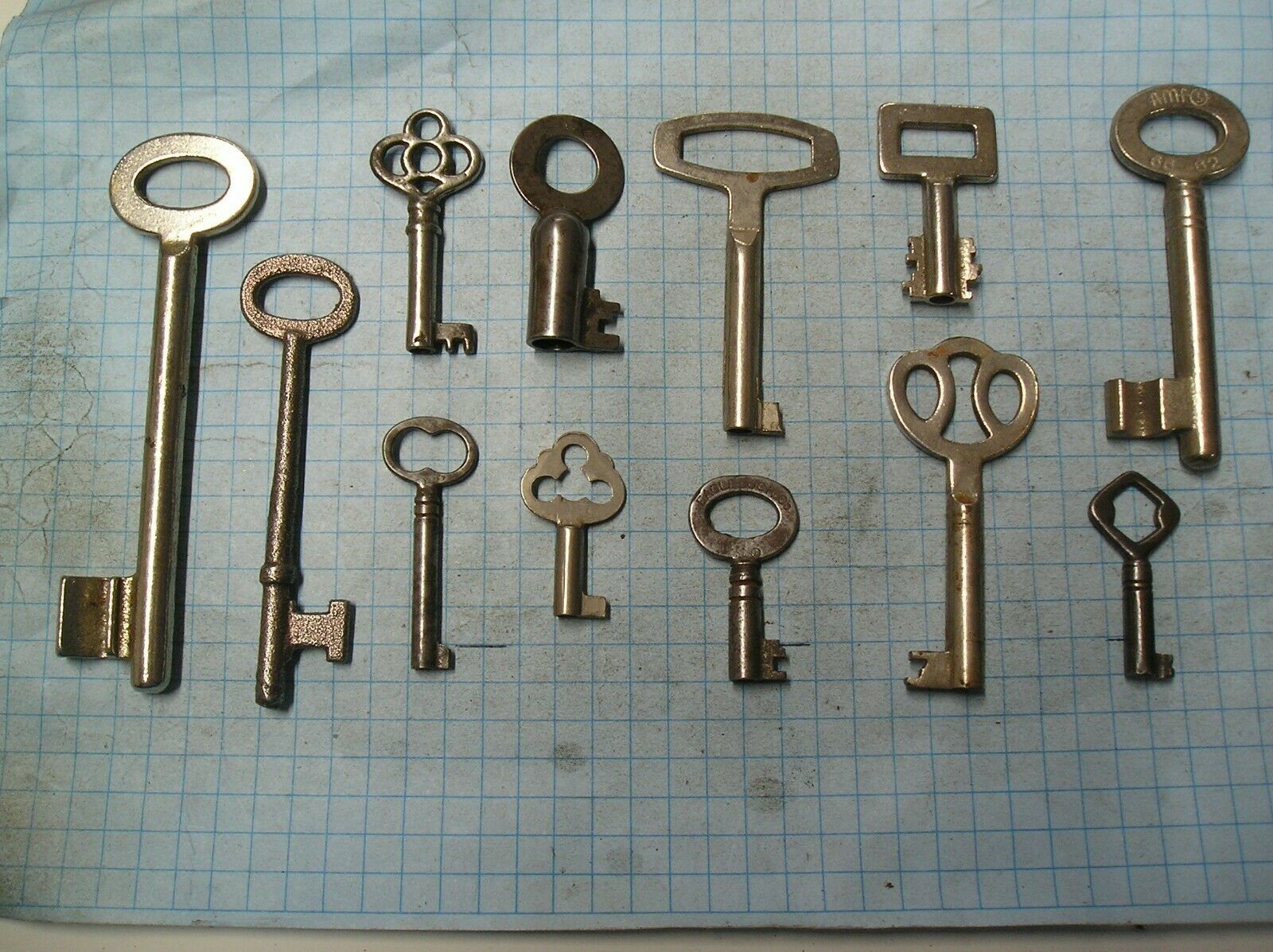 Title (ebay affiliate link): LOT OF 12 ANTIQUE SKELETON, FURNITURE, BARREL, CABINET AND OLD LOCK KEYS