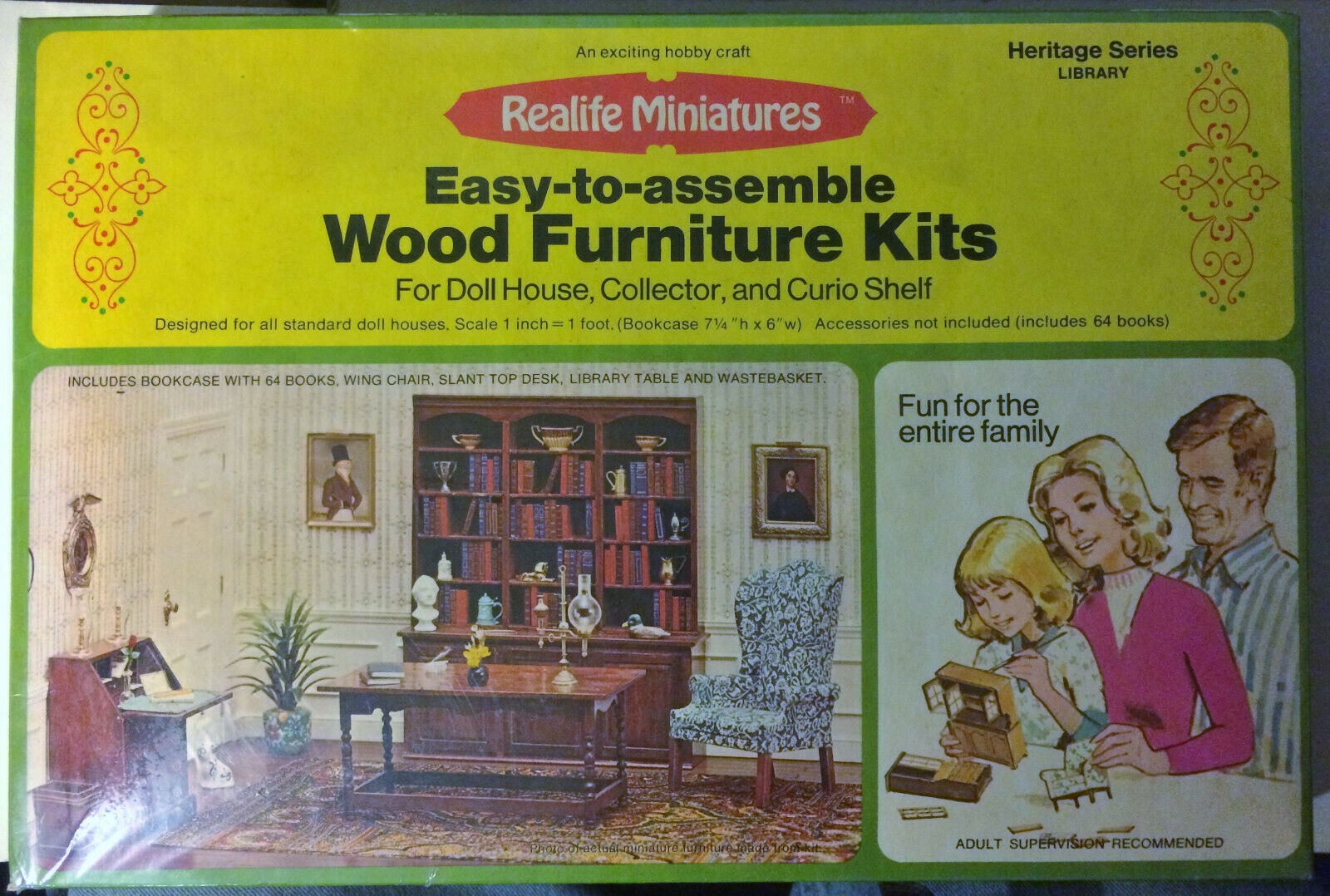 Title (ebay affiliate link): Vintage 1976 Realife Miniatures Doll House Wood Furniture Kit Library Set MIB