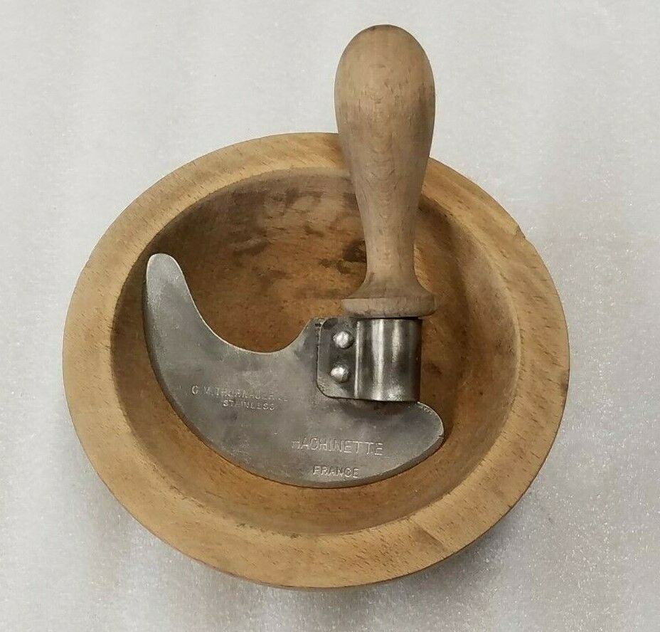 Title (ebay affiliate link): Antique Hardwood Wooden Bowl with Hachinette Chopper CM Thurnauer France