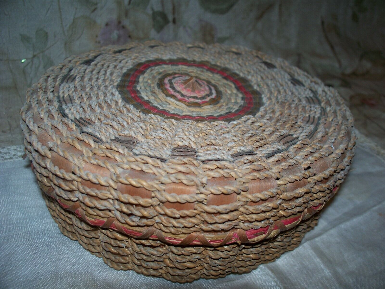 Title (ebay affiliate link): ANTIQUE WOVEN SWEET GRASS?? BASKET-USED- COVERED CONTAINER- EARLY 1900''S??