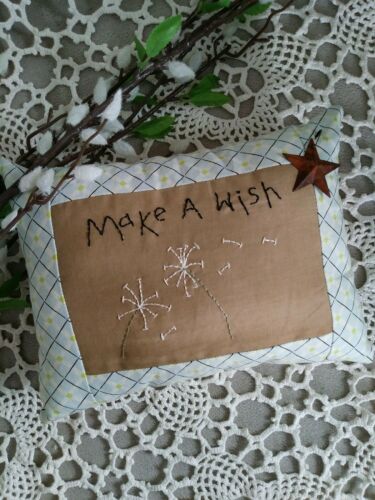 Primitive Stitchery Pillow Sampler Make A Wish Dandelion Flower Ornie Tuck Sign
