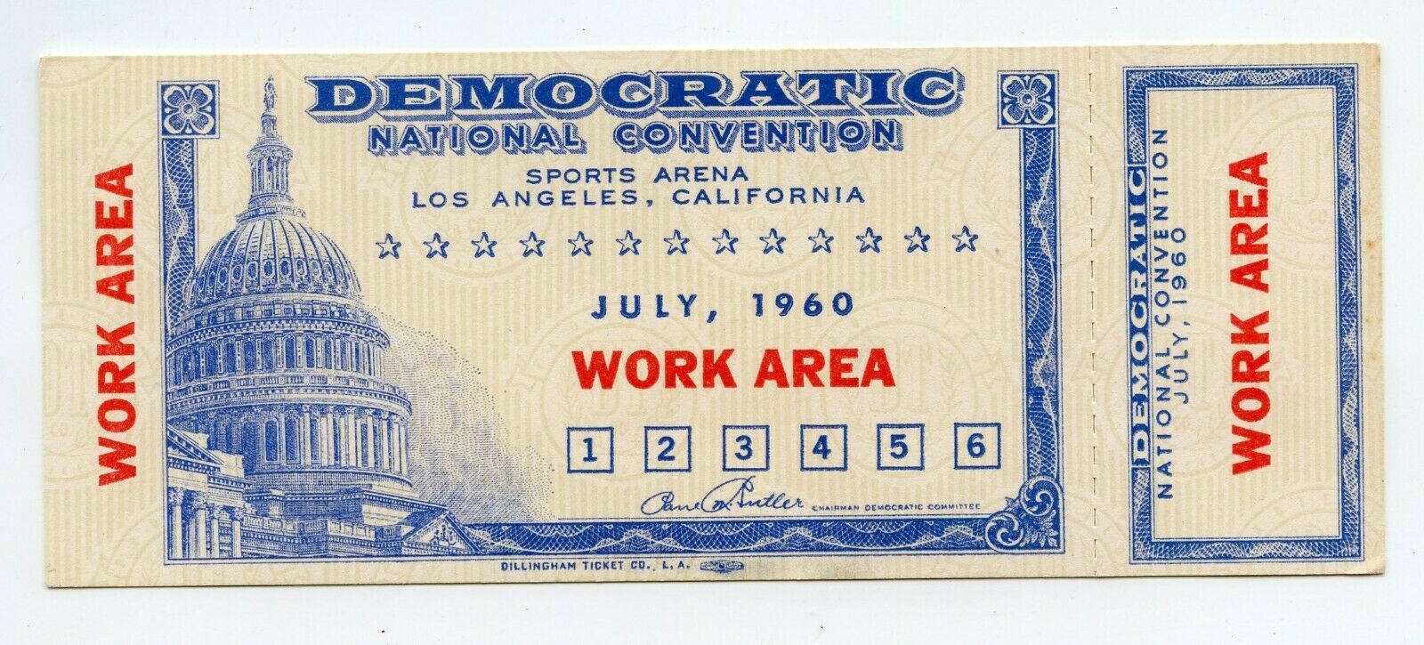 1960 Democratic National Convention Ticket JFK & LBJ Work Area