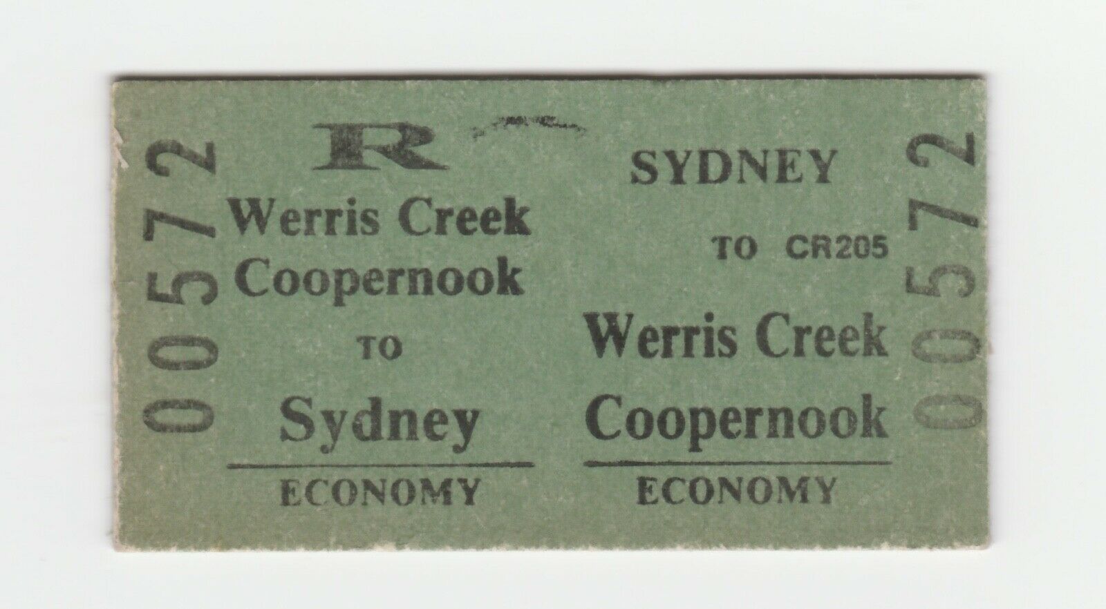 Title (ebay affiliate link): NSW railway Ticket, Economy Return Fare- Werris Creek Coopernock to Sydney