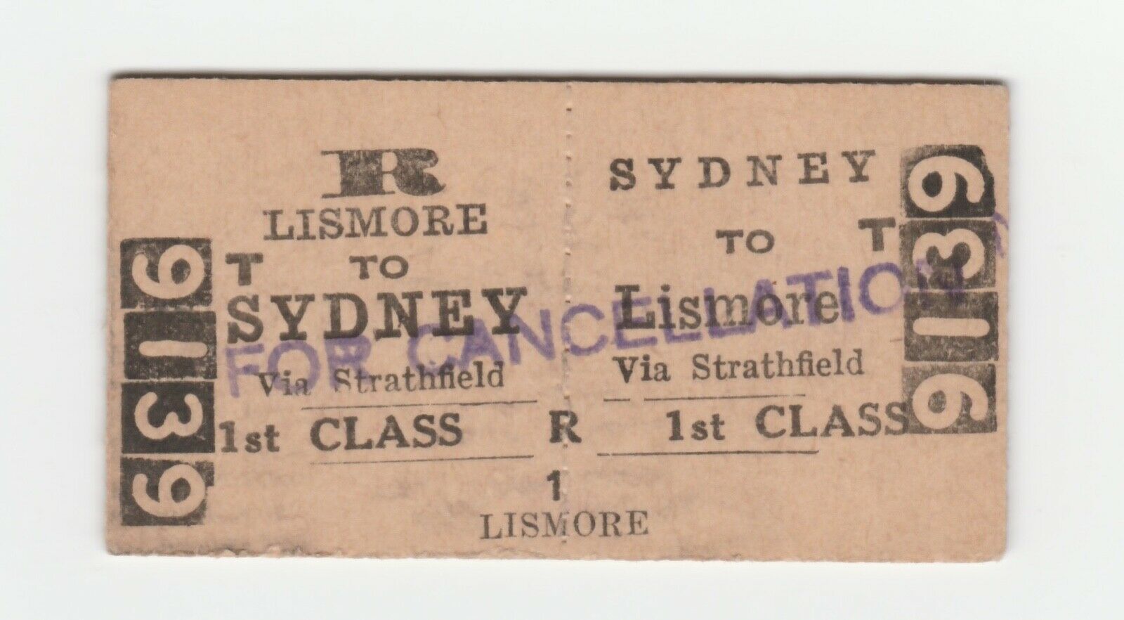 Title (ebay affiliate link): NSWGR Railway ticket 1class Return- Lismore to Sydney Date 30 Sep. 60
