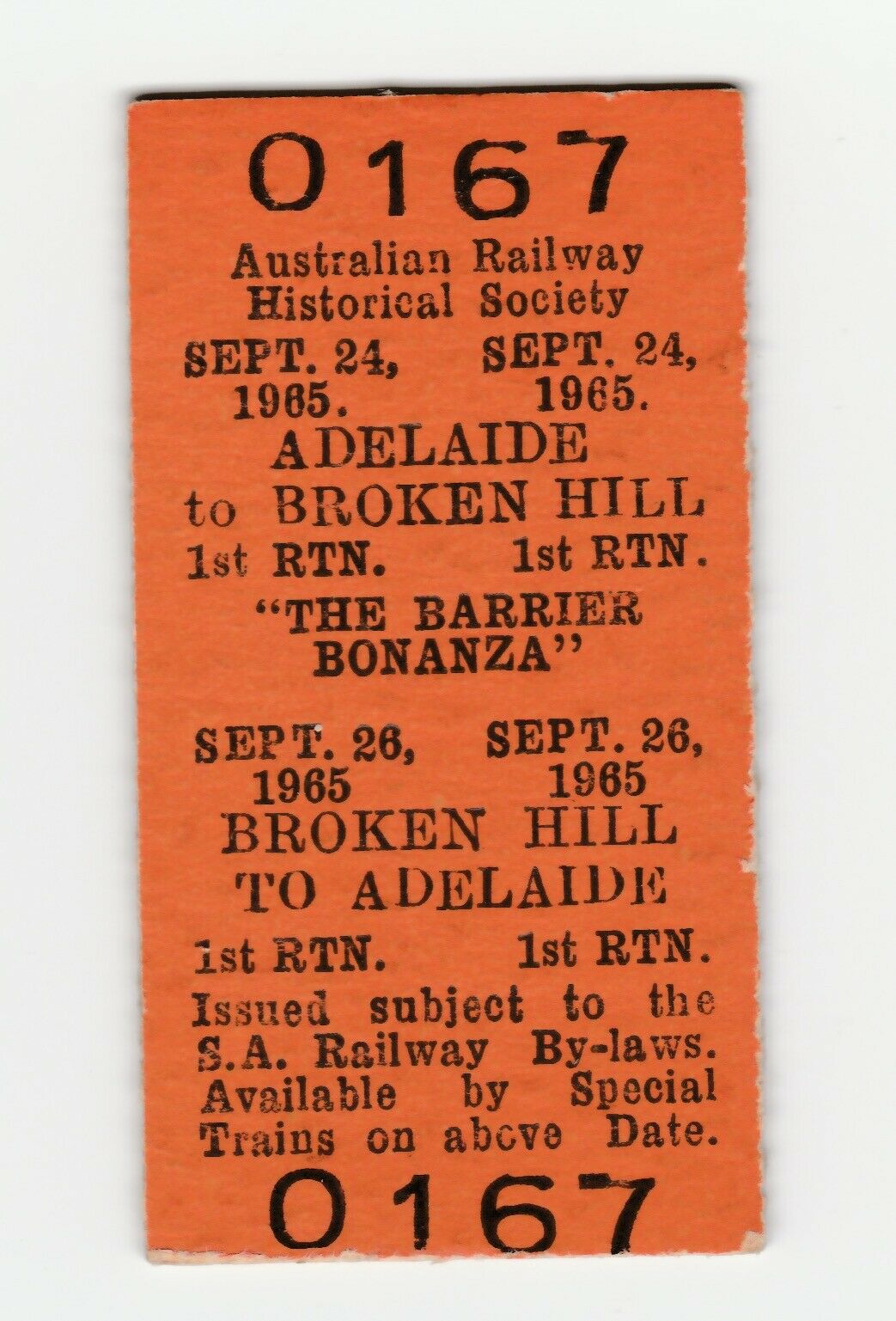 Title (ebay affiliate link): ARHS Sept 24 1965 Railway Ticket, Adelaide to Broken Hill "Barrier Bonanza"