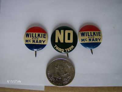 Title (ebay affiliate link): NO THIRD TERM Willkie McNary campaign buttons WWII