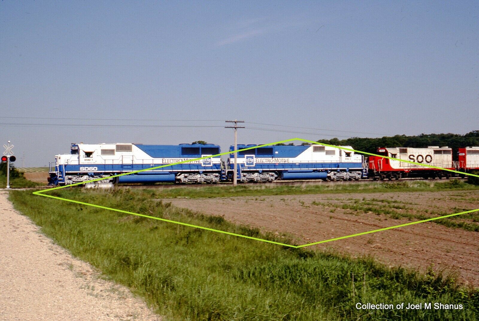 EMD #1 & #4 Demonstrators SD 60''s at Byron Wisconsin Original Kodachrome Slide