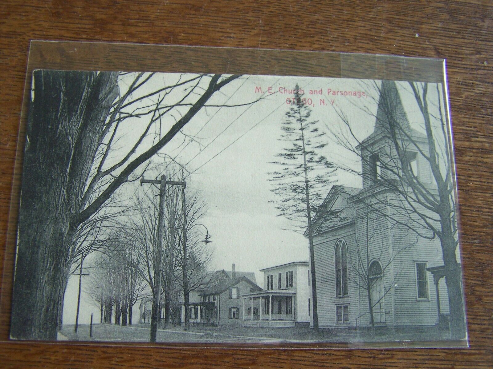 Title (ebay affiliate link): OTEGO, NY-B&W POSTCARD-UNPOSTED--ME.CHURCH & PARSONAGE