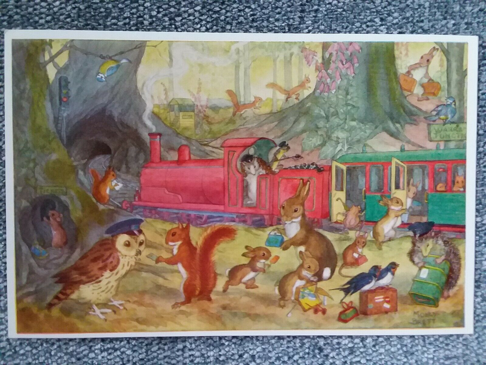 Molly Brett - Signed Post Card: "Catching the Train", Pk 297. Unposted.