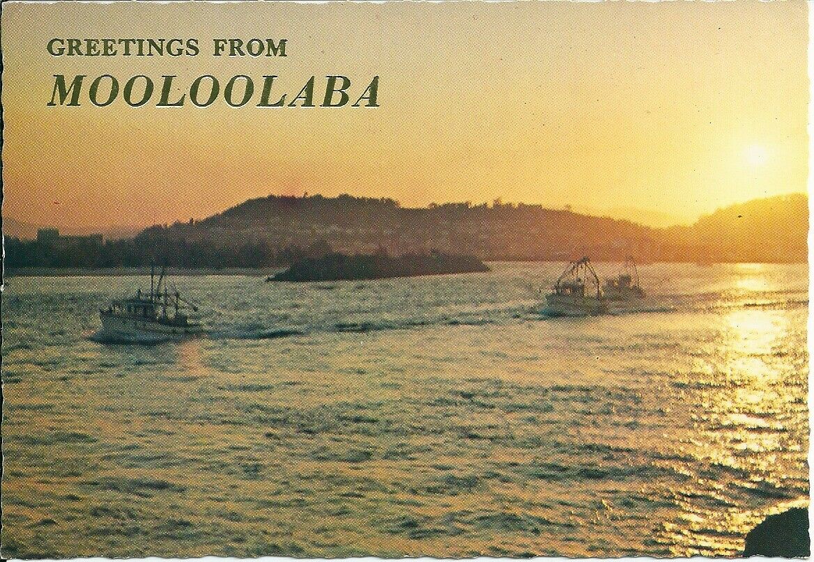Title (ebay affiliate link): Colour Postcard , Trawlers at Dusk , embossed Greetings from Mooloolaba , (CH)