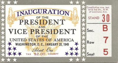 Title (ebay affiliate link): Ticket to Inauguration of Harry S. Truman Jan 20, 1949