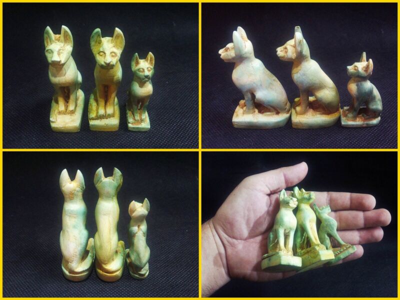 Title (ebay affiliate link): EGYPTIAN ANTIQUES ANTIQUITIES 3 Bastet Cats Family Statue Figure 1549-1090 BC