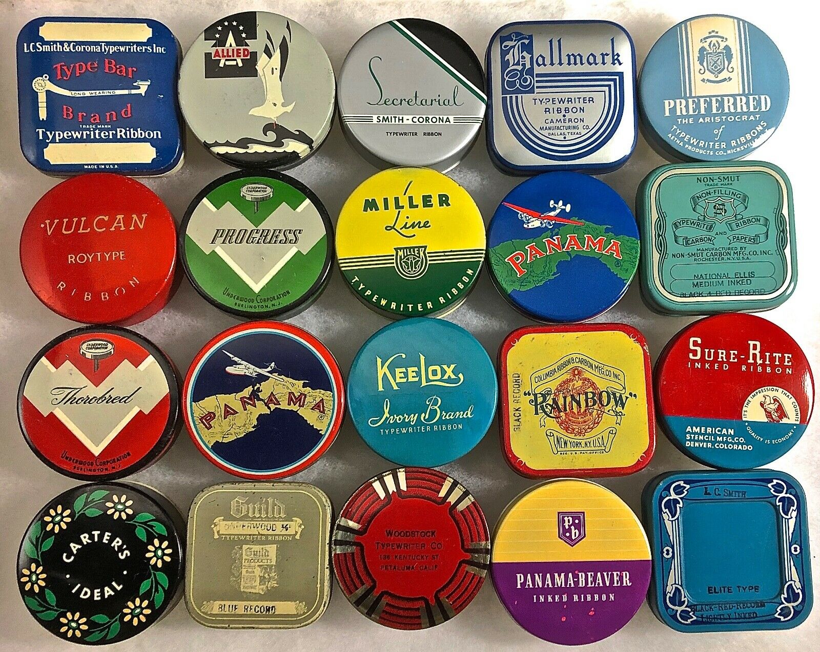 20 ALL DIFFERENT COMMON TYPEWRITER RIBBON TINS