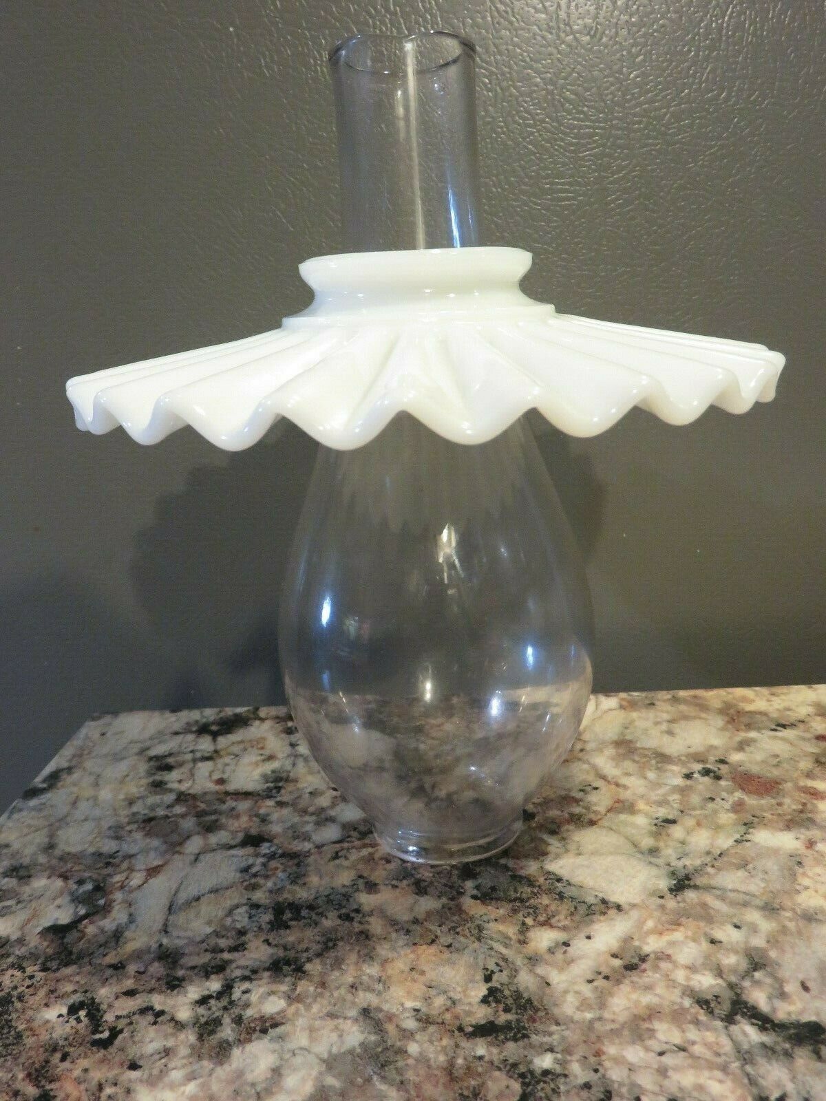 Title (ebay affiliate link): ANTIQUE VINTAGE WHITE MILK GLASS PETTICOAT PLEATED CRIMPED OIL KEROSENE SHADE