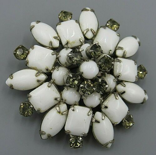 Title (ebay affiliate link): Vintage Jewelry High End White Milk Glass Flower BROOCH PIN Rhinestone Lot R