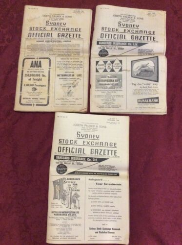Title (ebay affiliate link): 3 X Original 1950s Sydney Stock Exchange Official Gazette. VG Condition. Vintage