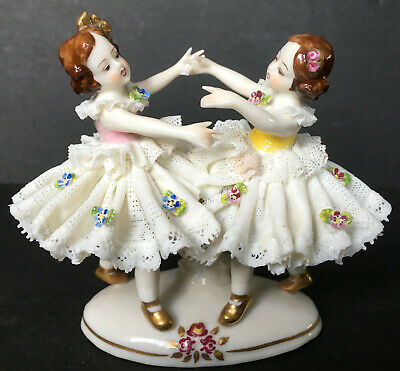 Dresden Porcelain Lace Franz Witter Twin Ballerina Dancing Girls