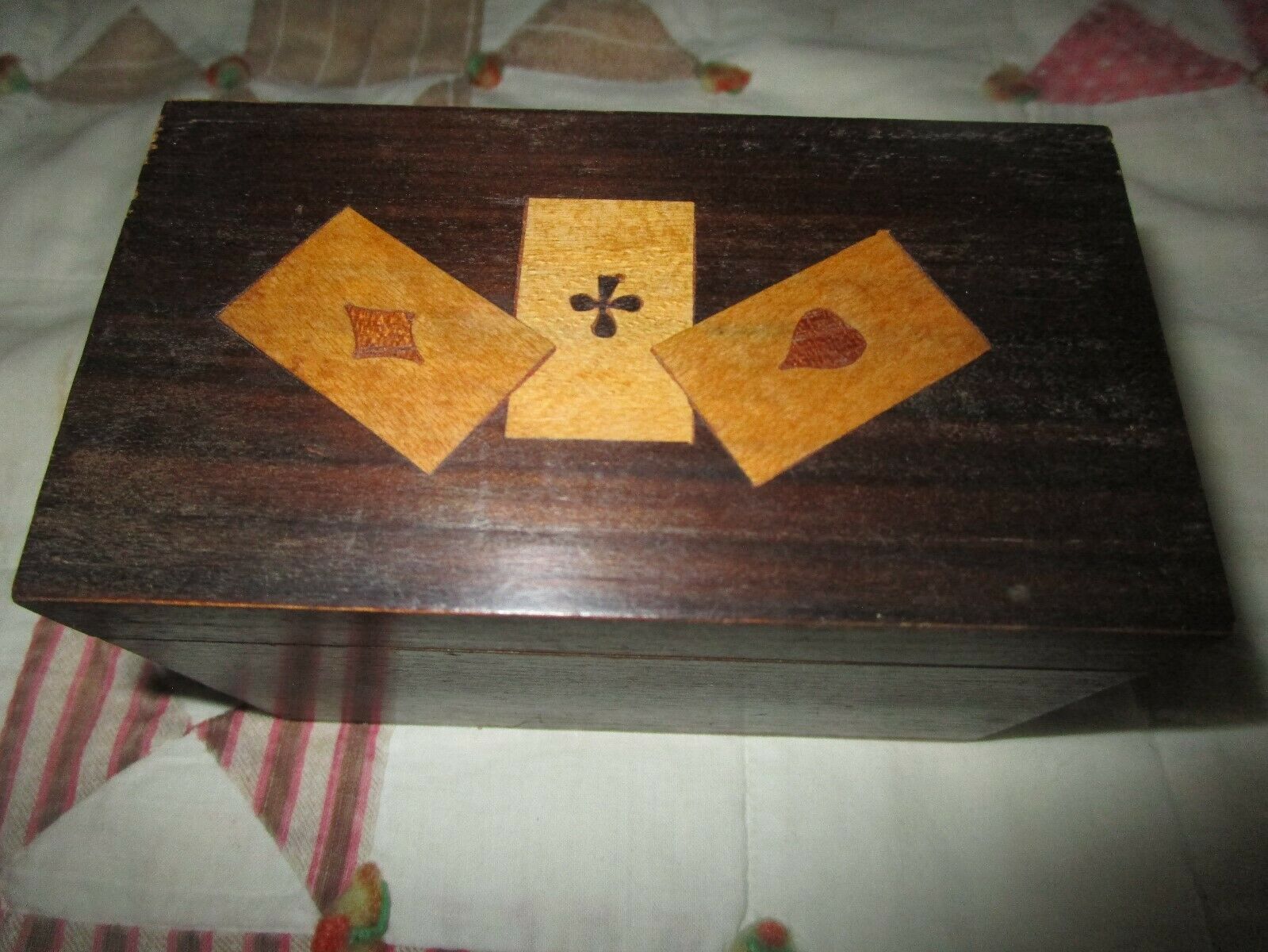 VINTAGE MARQUETRY PLAYING CARD BOX made in JAPAN