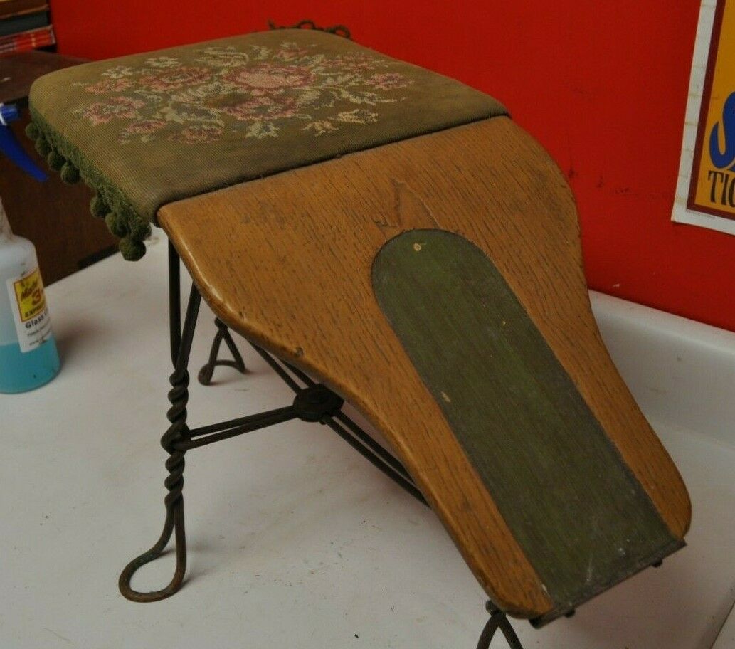 Title (ebay affiliate link): ANTIQUE Vintage WOOD & WIRE SHOE STORE SALESMAN BENCH STOOL