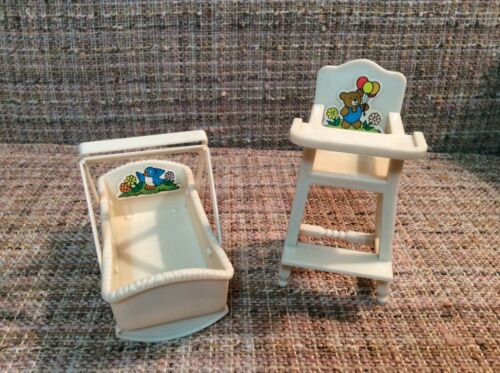 Title (ebay affiliate link): Vintage 1982 Meritus Toy High Chair & Baby Cradle.