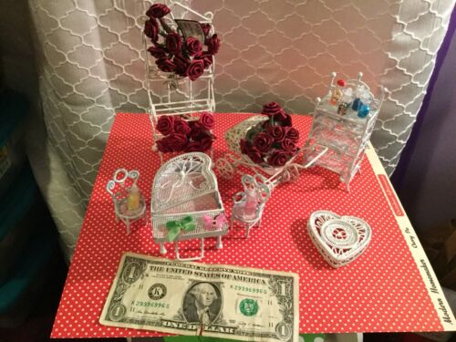 Title (ebay affiliate link): Dollhouse Lot Miniature White Wire Wicker Metal Furniture
