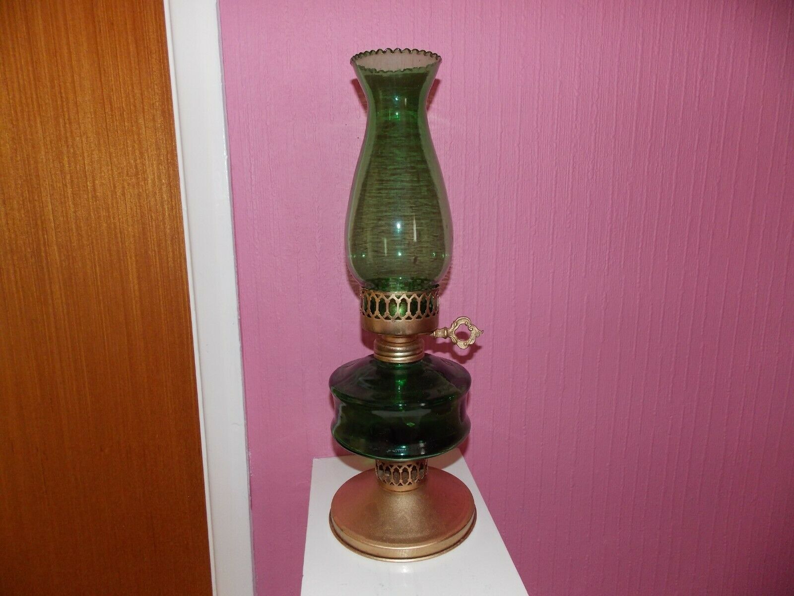 GREEN GLASS OIL LAMP WORKING WITH NEW WICK