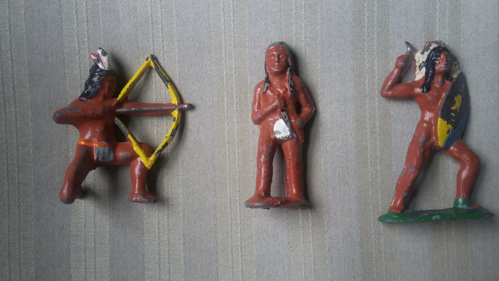 Title (ebay affiliate link): 3 Vintage Barclay Indians with Knifes with Bow & Arrow with Tomahawk & Shield