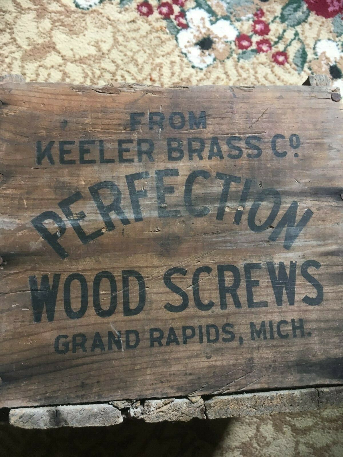 Vintage wooden crate box Keeler Brass Co. wood screws Grand Rapids, Michigan