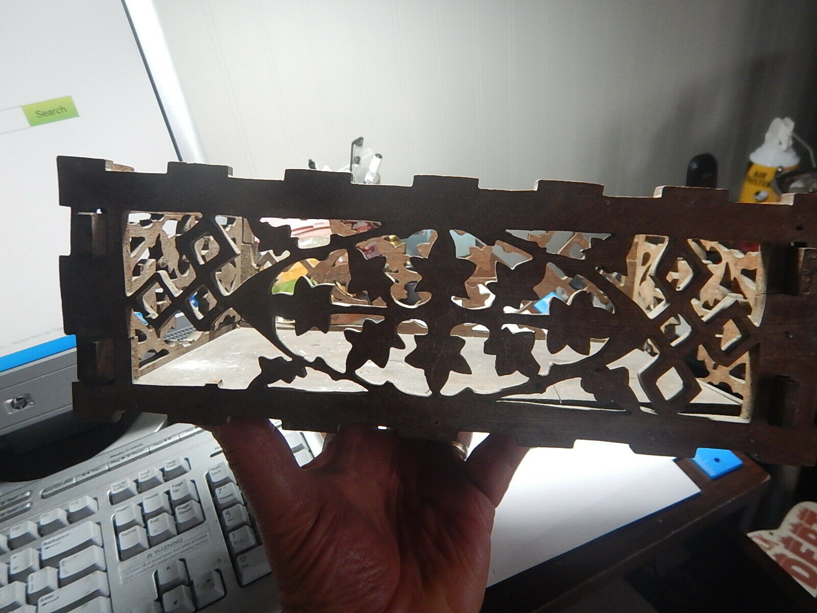 Title (ebay affiliate link): Tramp Art wood carved open work box for napkins or letters leaves old estate