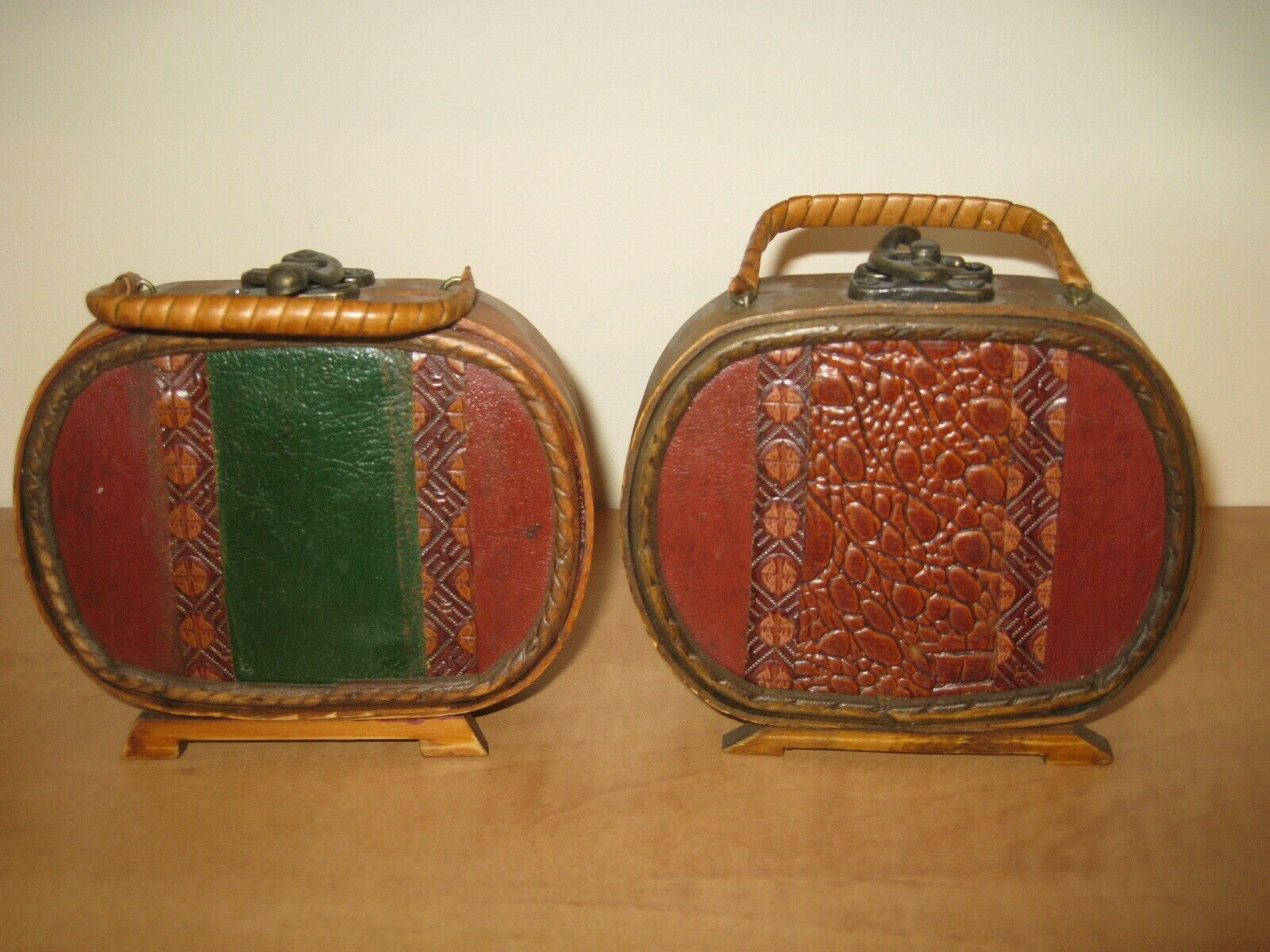 VINTAGE WOOD MINI LUGGAGE SUITCASE BOX LOT OF TWO