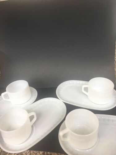 RARE Vtg Federal Milk Glass 8PC Ribbed Soup Sandwich Snack Set Plate Mug Cup