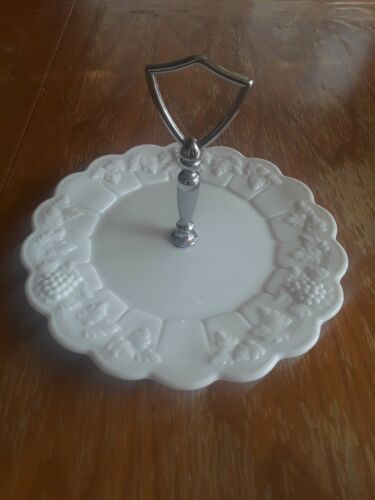Title (ebay affiliate link): Westmoreland Milk Glass Paneled Grape Pattern 8.5" Center Handled Tidbit Server