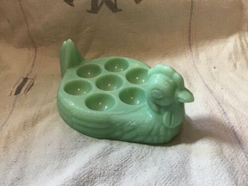 VTG Jadeite Chicken Hen Vintage Green Milk Glass Egg Holder Excellent