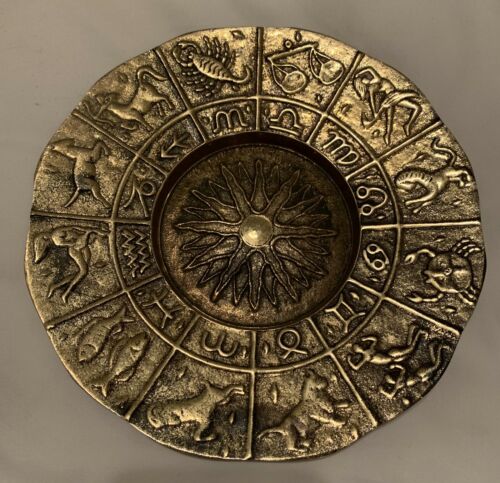Title (ebay affiliate link): Vintage Brass Astrology Zodiac Wheel Plate Dish Boho
