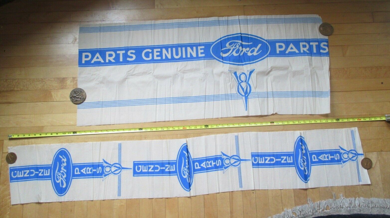 Title (ebay affiliate link): Vintage Genuine Ford Parts V8 Advertising Crepe Paper Sign Dealership