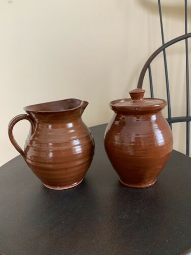 old sturbridge village pottery Redware Small Pitcher And Jar Set