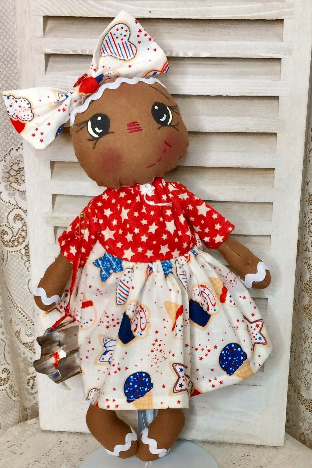 Title (ebay affiliate link): Primitive Gingerbread Doll Patriotic Americana USA Shelf Sitter